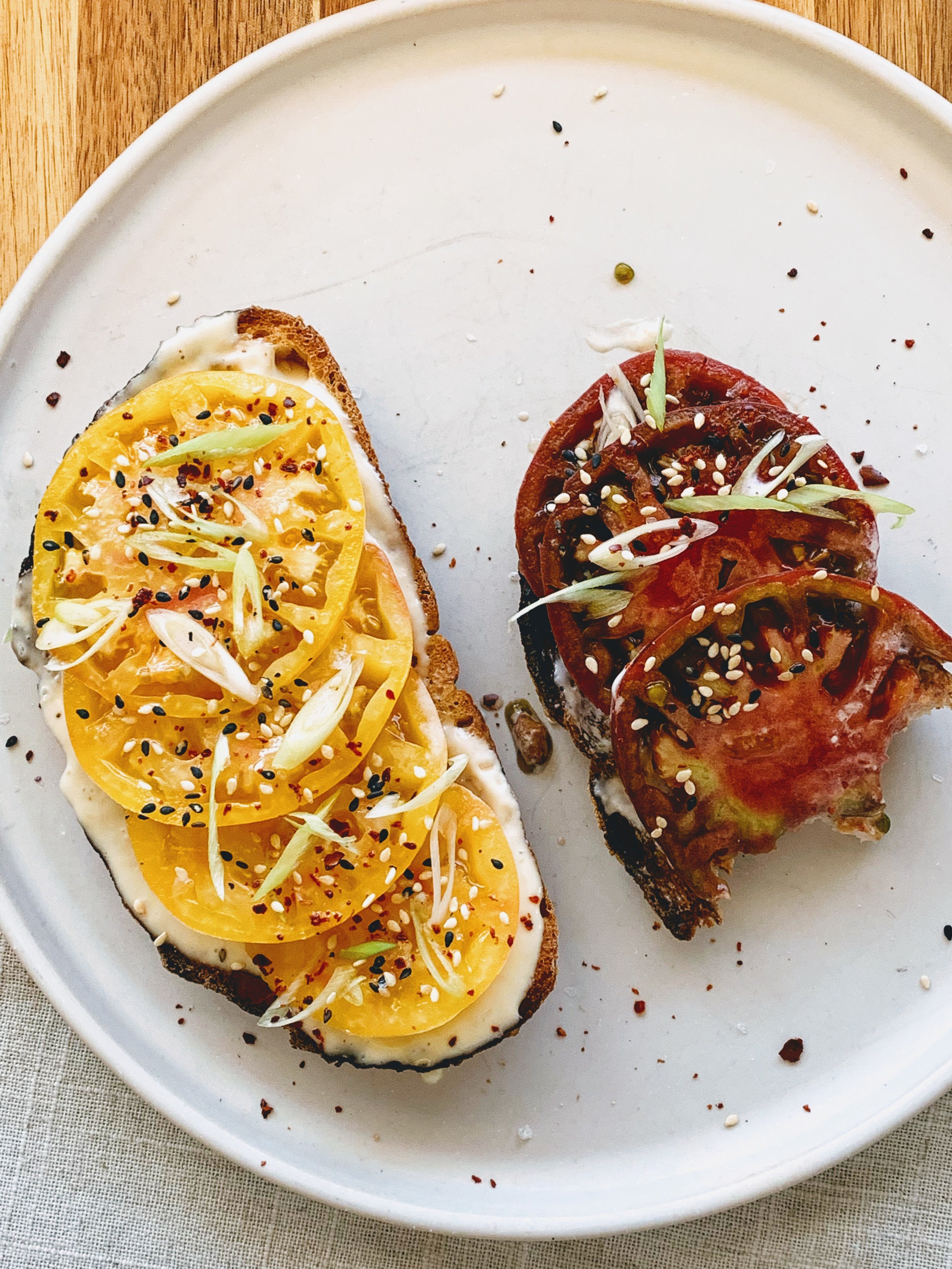 If you need to find me this summer, I’ll be on a tomato toast bender with miso mayo and tomato juice dripping down my face. Please, don’t send help, just a bib.